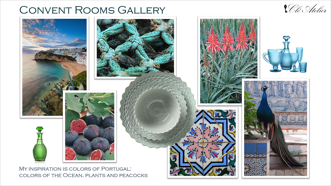 При выборе цветовой палитры, вдохновением послужили цвета Португалии - цвета океана, зелени и павлинов.